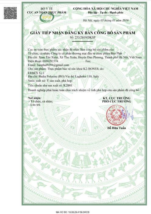 CÔNG BỐ SẢN PHẨM CỦA BỘ Y TẾ K2-Bones – Argythion – Flexart :