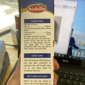Nobilin Coenzym Q10 hỗ trợ bổ sung các chất chống oxy hóa, giúp giảm cholesterol và triglycerid máu, hỗ trợ giảm nguy CƠ xơ vữa động mạch do cholesterol máu cao.