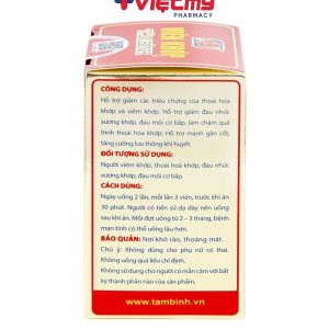Viên Khớp Tâm Bình hỗ trợ giảm các triệu chứng của thoái hóa khớp và viêm khớp. Hỗ trợ giảm đau nhức xương khớp, đau mỏi cơ bắp, làm chậm quá trình thoái hóa khớp, hỗ trợ mạnh gân cốt, tăng cường lưu thông khí huyết.